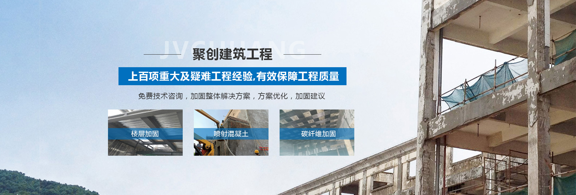 山西聚創建筑工程技術有限公司是一家涉足建筑工程改造加固、基礎加固、樓房糾偏、橋梁結構加固補強、鋼結構加固與安裝、靜力切割拆除、樓房增層、抗震加固、裝飾工程、工程檢測、設計、加固材料產品研發和新技術推廣或技術咨詢服務型加固企業等諸多領域。